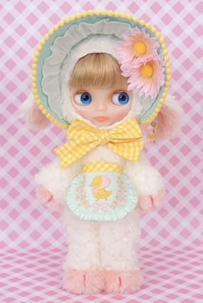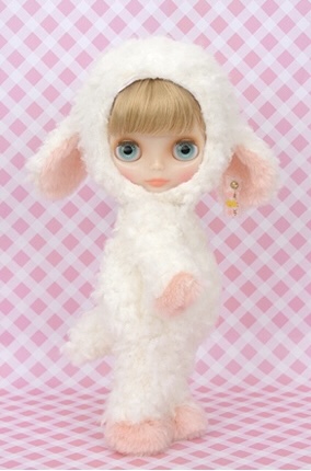 "Una and Dot" is an adorable Blythe doll dressed in a lamb costume.